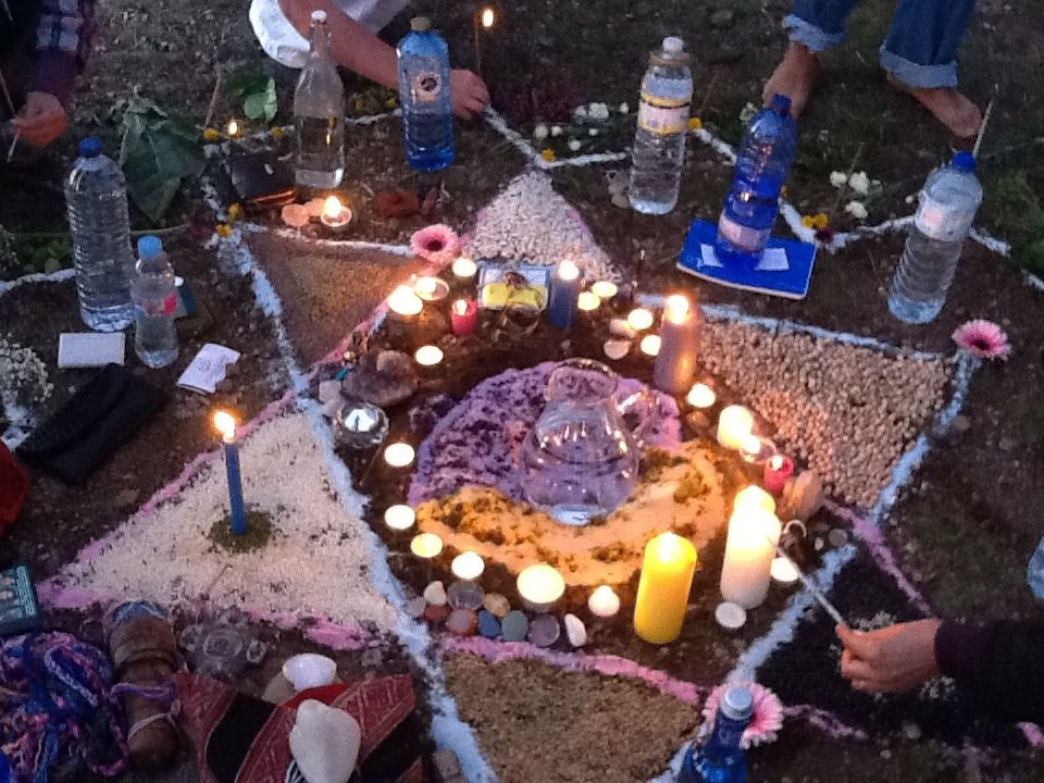 siembra de cristales y creacion de un mandala de luz en Santiago de compostela